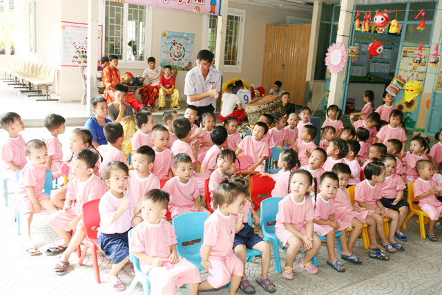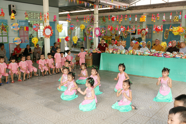 Văn nghệ đón Tết Trung thu do các cháu biểu diễn