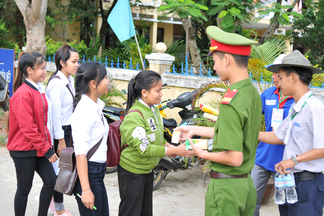 Trong đó, các tình nguyện viên sẽ tập trung vào công tác: tư vấn, hỗ trợ hướng dẫn dự thi; đảm bảo an ninh, an toàn tại địa điểm thi; hỗ trợ thí sinh và người nhà thí sinh về tư vấn mùa thi; đặc biệt, hỗ trợ thí sinh đi lại bằng xe ôm miễn phí, nước lọc, nước trà đá miễn phí, bánh mì, sữa miễn phí và ăn cơm trưa miễn phí để phục vụ các thí sinh huyện nhà tham gia kỳ thi THPT quốc gia.