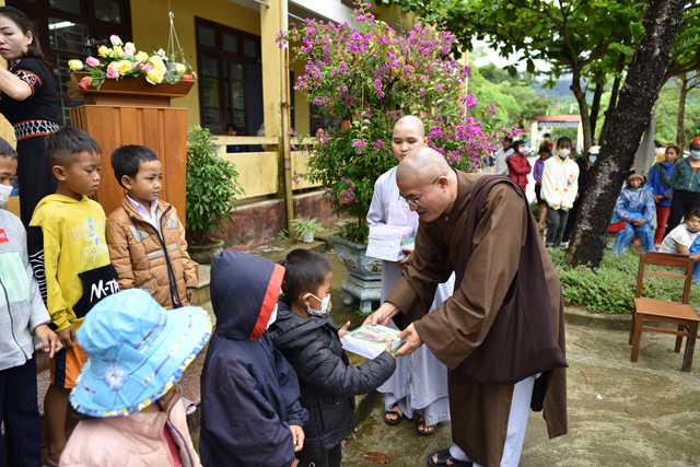 Đại đức Thích Tâm Phương thay mặt Ban Trị sự và các em học sinh, bày tỏ lòng biết ơn sâu sắc đến Sư cô Thích Nữ Thanh Trí và quý Phật tử hảo tâm đã về thăm và tặng quà cho các em học sinh vùng cao A Lưới còn gặp nhiều khó khăn. Cầu nguyện Tam Bảo gia hộ đến quý Tôn đức, Phật tử các giới luôn an lạc trong suối nguồn từ bi và trí tuệ của mười phương chư Phật.