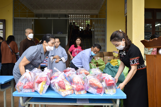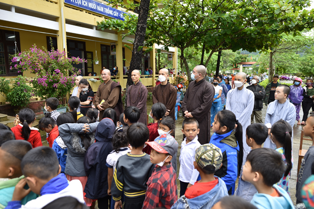 Tham dự buổi phát quà có Bà Lê Thị Mai Loan, Phó Chủ tịch UBMT TQVN huyện A Lưới; Đại đức Thích Tâm Phương, Trưởng BTS GHPGVN huyện A Lưới; Sư cô Thích Nữ Thanh Trí, chùa Thiên Ân, thành phố Phan Rang, tỉnh Ninh Thuận cùng quý thầy cô tại trường Tiểu học Hồng Vân.