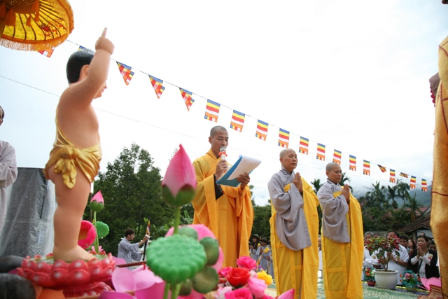Hôm nay, toàn thể Phật Tử chúng ta, hân hoan đón mừng ngày Phật Đản trở về, trước lễ đài trang nghiêm, tôn dung rực rỡ của Đức Phật sơ sinh, chúng ta lắng lòng thanh tịnh, suy niệm về cuộc đời cao cả của Ngài, về giáo pháp giải thoát mà Ngài đã hiến tặng cho nhân gian. Nguyện dâng lên Đức Từ Phụ những gì cao quí nhất. Con xin kết đóa hoa đời, dâng lên ngài vĩnh viễn một niềm tin, và giữ mãi ngọn đuốc từ bi, an lành Ngài đã thắp, để cho vầng trăng trong trái tim con, vẫn sáng soi vằng vặc, sáng mọi nẻo đường, xóa mọi u tối lối con đi.