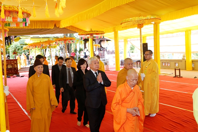 Ông Lê Trường Lưu, UV Ban Chấp hành T.Ư Đảng, Bí thư Tỉnh ủy Thừa Thiên Huế dẫn đầu đoàn Tỉnh ủy, HĐND, UBND, UBMTTQVN tỉnh nhà đã thành kính tưởng niệm trước Giác linh đài, hữu nhiễu kim quan và ghi sổ tang bày tỏ sự kính tiếc trước sự viên tịch của Hòa thượng.