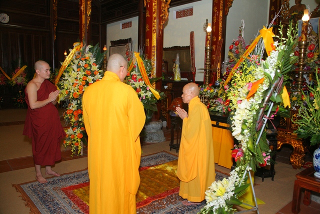 Phái đoàn Ban Văn Hóa, Ban Hoằng pháp, Trung tâm Liễu Quán, do Hòa thượng Thích Hải Ấn, Hòa thượng Thích Quang Nhuận dẫn đoàn, Ban Giáo dục Tăng Ni Trung Ương GHPGVN, Hội đồng Điều hành Học viện Phật giáo Việt Nam tại Huế do TT. Thích Nguyên Thành, Phó Trưởng Ban GDTN TƯ, Phó Viện trưởng Học viện Phật giáo Việt Nam tại Huế làm trưởng đoàn, cùng chư Tôn đức Ban GDTN TƯ, chư Tôn đức Hội Đồng Điều hành Học viện, quý Tăng Ni sinh viên các khóa đã về dâng hương đảnh lễ Đức Đệ nhất Tăng thống;