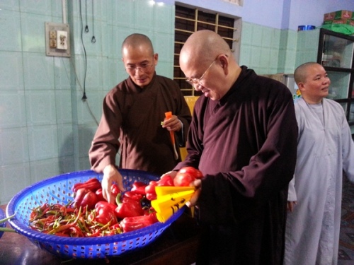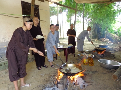 Ni trưởng TN. Như Minh đang hướng dẫn Ni chúng làm bếp