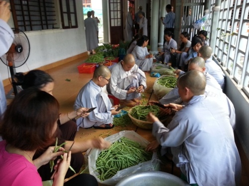 Để chuẩn bị cho việc phục vụ gần 14.000 suất ăn cho các thí sinh và người nhà trong hai kỳ thi đại học năm 2013, BTC Tiếp sức mùa thi 2013 đã huy động hàng trăm Tăng, Ni và Phật tử tại nhiều chùa ở Huế.