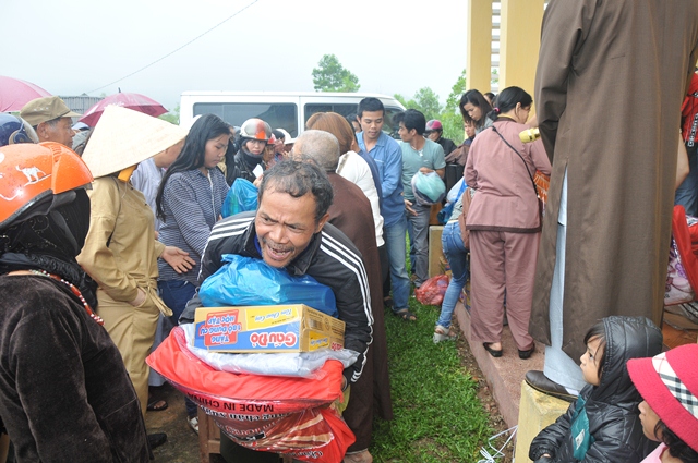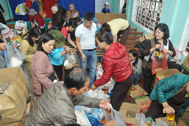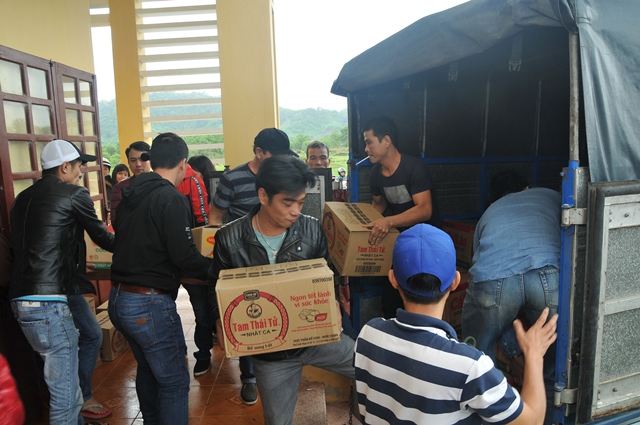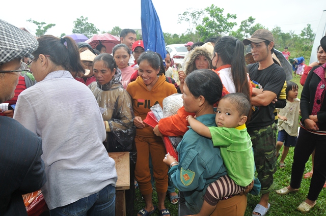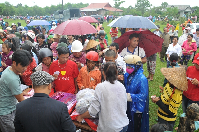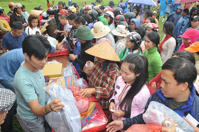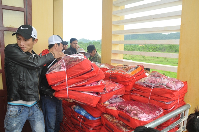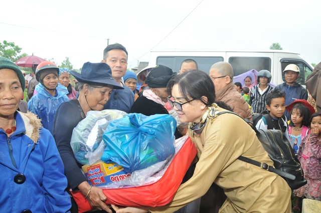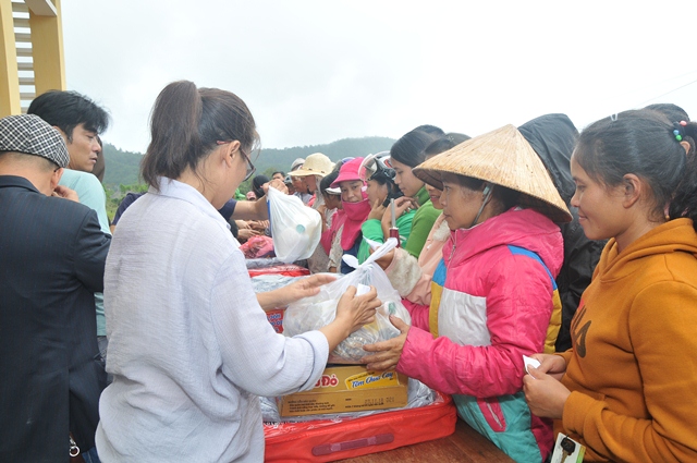 Tại nhà sinh hoạt cộng đồng thôn A So, xã Hương Lâm, huyện A Lưới, phái đoàn đã trao tặng 250 phần quà (hơn 125 triệu đồng), mỗi phần quà trị giá hơn 450.000đ, gồm: Gạo, mỳ, chăn, áo ấm, muối, nước mắm... nhằm chia sẻ phần nào khó khăn đối với những gia đình đồng bào có hoàn cảnh khó khăn trong mùa mưa lạnh đến.