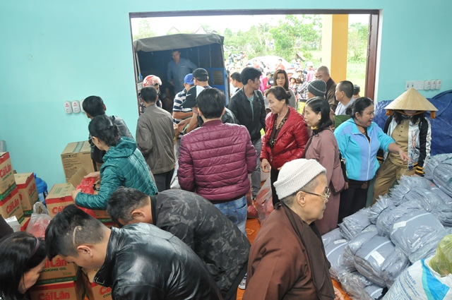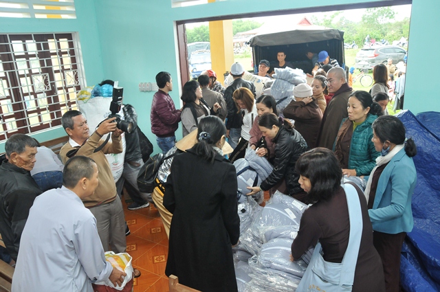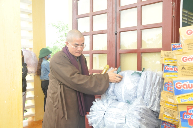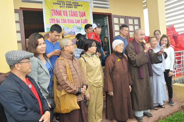 Sáng ngày 30/11, Đại đức Thích Tâm Phương, Trưởng BTS GHPGVN huyện A Lưới; Ni sư Thích Nữ Diệu Trung, Phó BTS hướng dẫn phái đoàn từ thiện chùa Phổ Hiền, phường Hòa Cường, quận Cẩm Lệ, Tp. Đà Nẵng do Ni Trưởng Thích Nữ Hạnh Tâm làm Trưởng đoàn; sư cô Thích Nữ Minh Hiền, Trưởng Ban KT - TC GHPGVN Tp. Đà Nẵng cùng quý Đạo hữu Phật tử đã về phát quà từ thiện tại nhà sinh hoạt cộng đồng thôn A So, xã Hương Lâm, huyện A Lưới, tỉnh Thừa Thiên Huế.