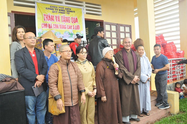 Thay mặt bà con được giúp đỡ, Đại đức Trưởng Ban Trị sự đã chân thành cảm ơn đến Ni trưởng và chư Ni cùng quý Phật tử chùa Phổ Hiền đã không quản ngại đường sá xa xôi về tại đây thăm và tặng quà cho bà con địa phương, những tặng phẩm này gói trọn tinh thần từ bi cứu khổ của người con Phật với phương châm phụng sự chúng sanh thiết thực cúng dường chư Phật.