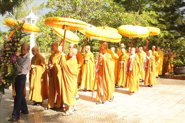 Lễ cung thỉnh Kim quan nhập Bảo tháp vào lúc 07 giờ 00 ngày 05.07 Giáp Ngọ (31.07.2014) tại Nghĩa trang Tổ đình Tường Vân, đường Lê Ngô Cát, phường Thủy Xuân, thành phố Huế.