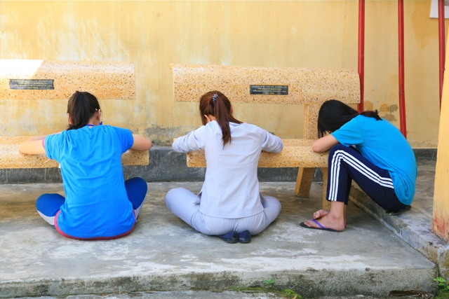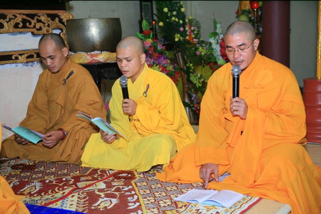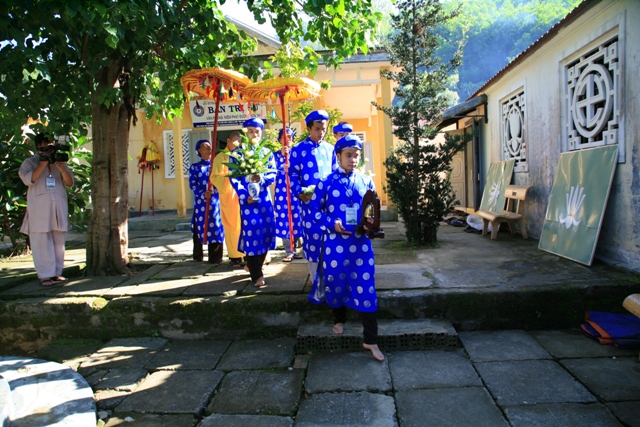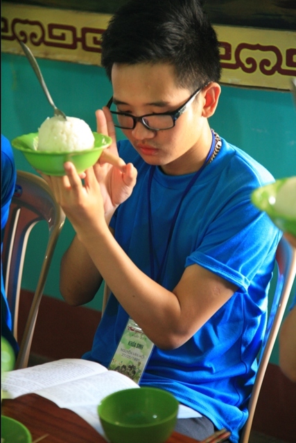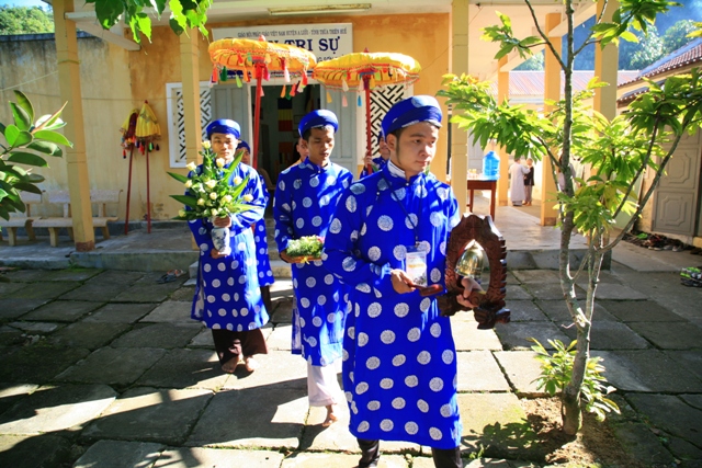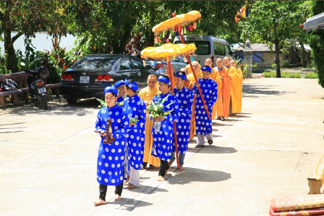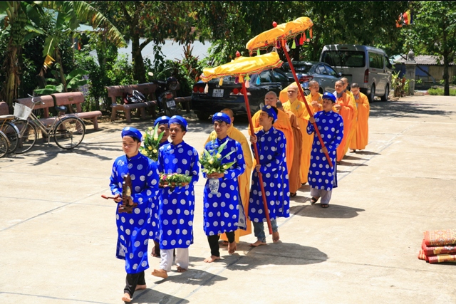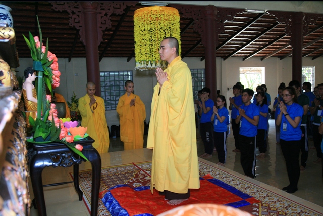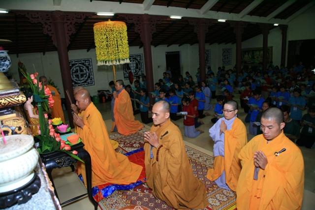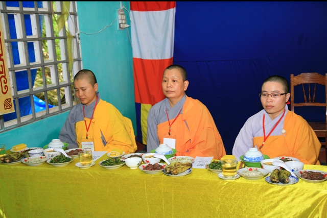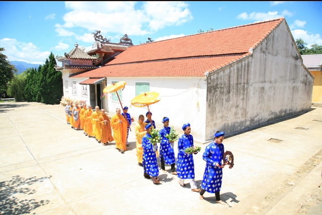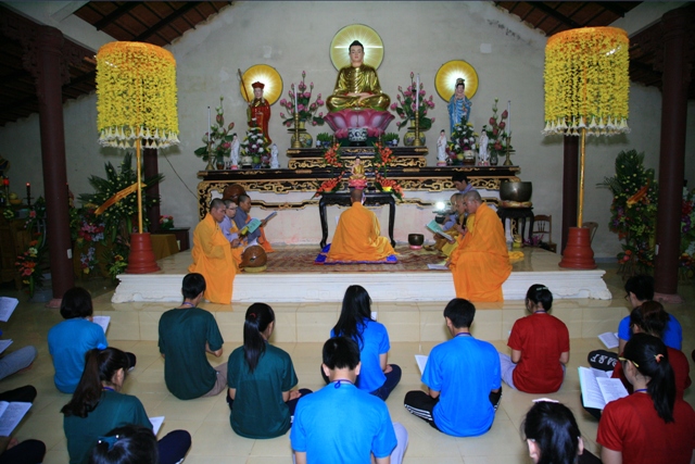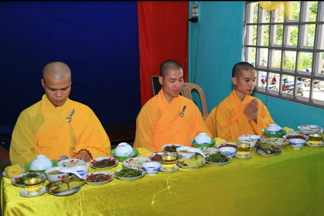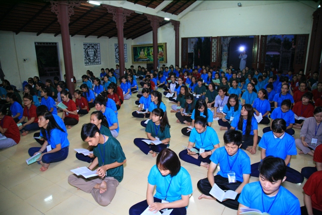 Sau khi hoàn thành bài thi viết cảm niệm và nghỉ giải lao, các khóa sinh tiếp tục được thực hành nghi thức quá đường và niệm Phật kinh hành dưới sự hướng dẫn của chư Tôn thiền đức BTS GHPGVN huyện A Lưới.