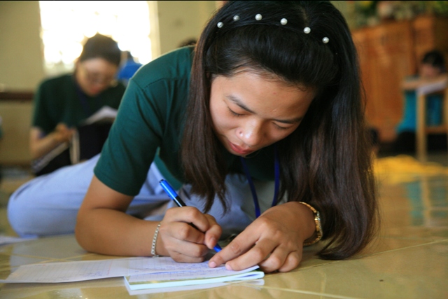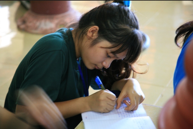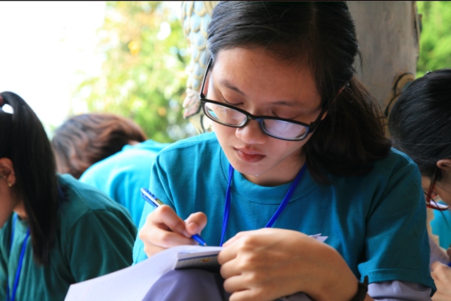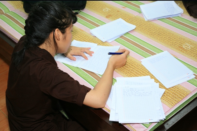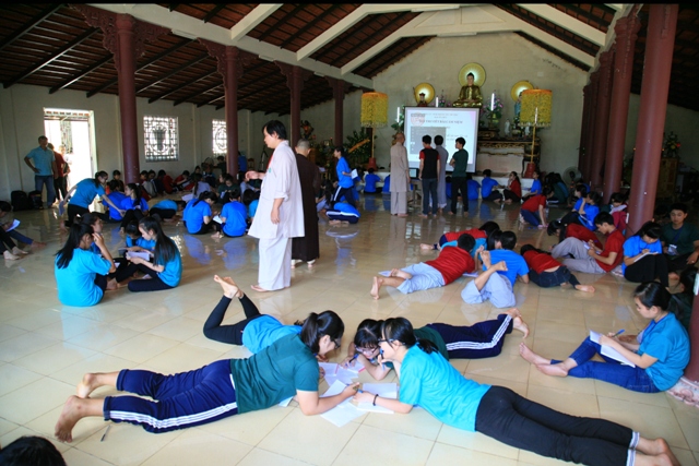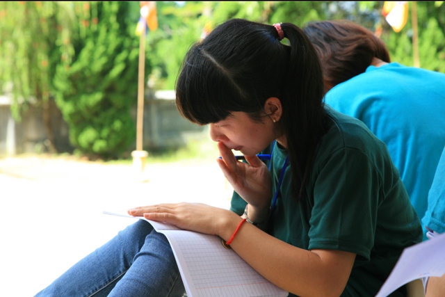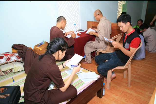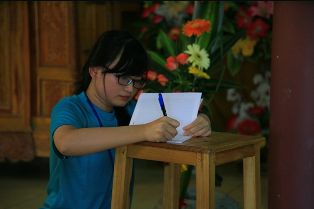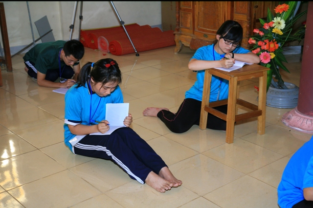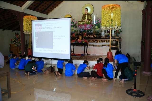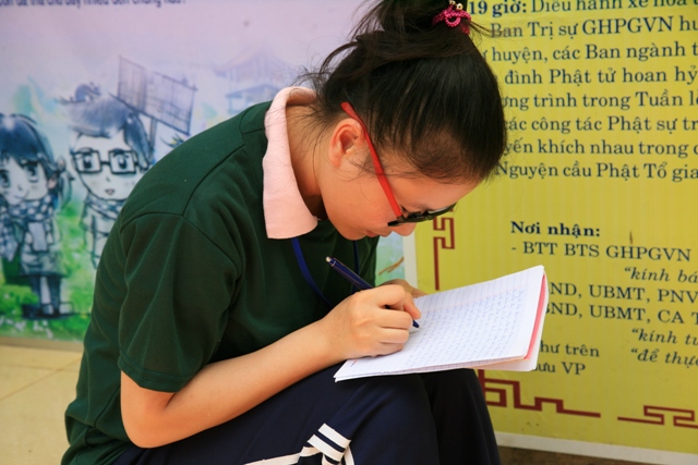 Kết thúc buổi thuyết giảng, các khóa sinh tham gia vào hoạt động thi viết bài cảm niệm về khóa tu. Đề tài BTC đưa ra cho khóa sinh với 3 nội dung tùy chọn: cảm niệm về khóa tu; cảm niệm về công ơn cha mẹ; thư gởi cho cha mẹ trong thời gian 45 phút. Cuộc thi diễn ra với nhiều hình ảnh xúc động, nhiều khóa sinh không cầm được nước mắt trong quá trình hoàn thành bài thi của mình.