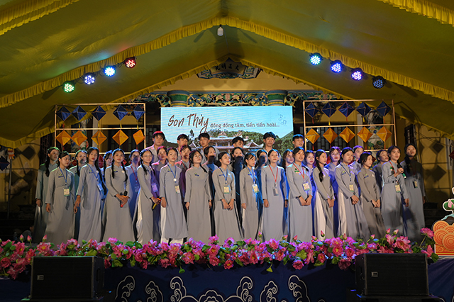 Với thời gian chưa đầy 2 tháng, các em từ 4 đoàn oanh nam, oanh nữ, thiếu nam, thiếu nữ và nhóm Htr trẻ đã tạo ra được hơn 24 sản phẩm mang tính nghệ thuật công phu sáng tạo đầy tâm huyết và rất nhiều món ăn truyền thống với hương vị đặc sắc. Đêm văn nghệ đã diễn ra thành công, nhận được nhiều sự khen ngợi của Chư Tôn đức và sự cổ vũ của rất đông khán giả đến xem.