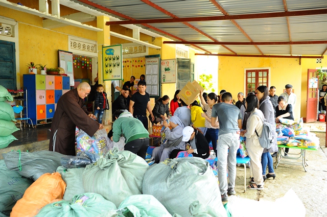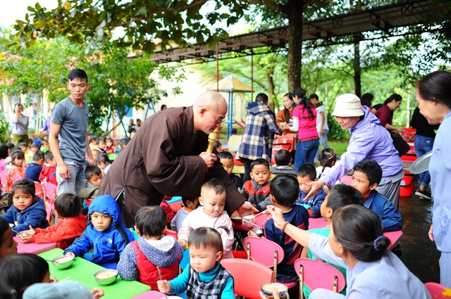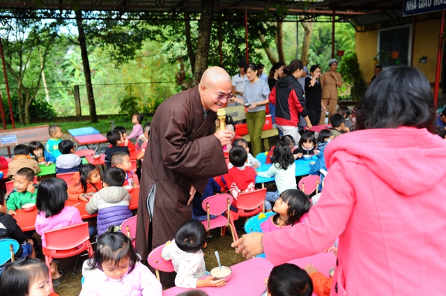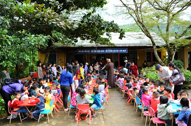 Sáng ngày 01-12, dưới sự hướng dẫn của Đại đức Thích Tâm Phương, Trưởng BTS GHPGVN huyện A Lưới; Ni sư Thích Nữ Diệu Trung, Phó Trưởng BTS và nhóm từ thiện Tâm An về tại trường mầm non Sơn Ca xã Hồng Kim huyện A Lưới để trao 210 phần quà đến các cháu đang theo học tại đây và một bữa ăn trưa dinh dưỡng cho 210 cháu.