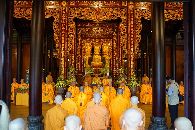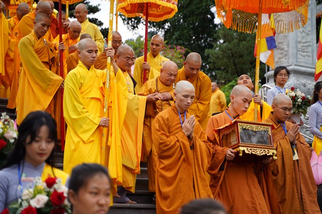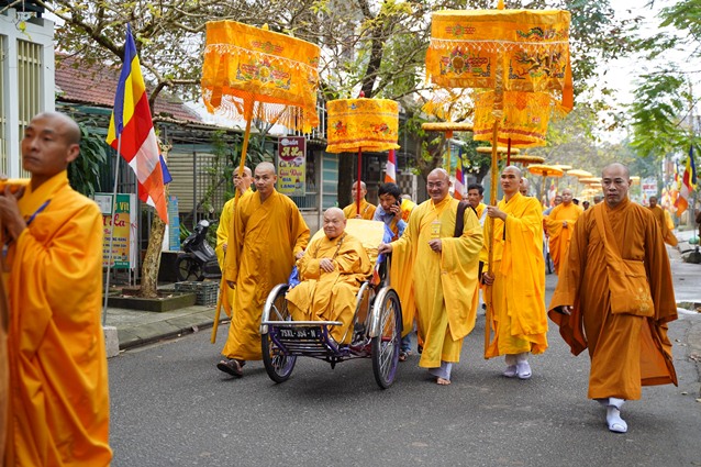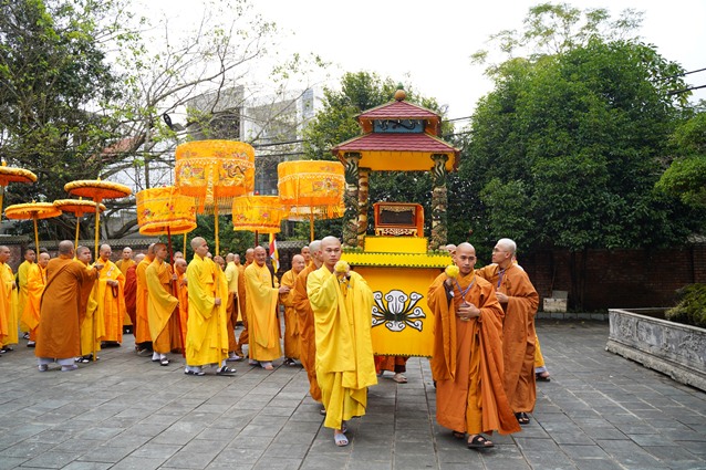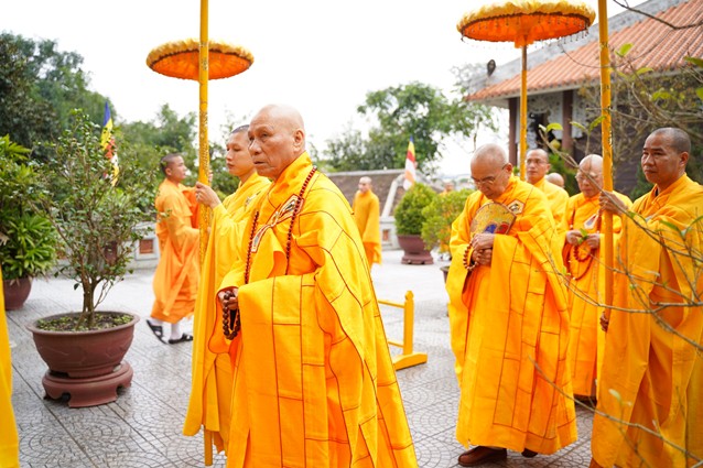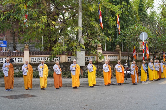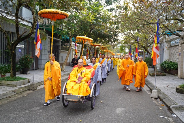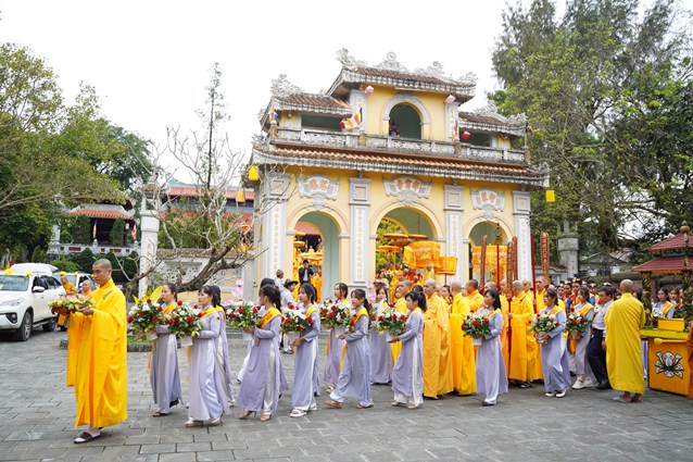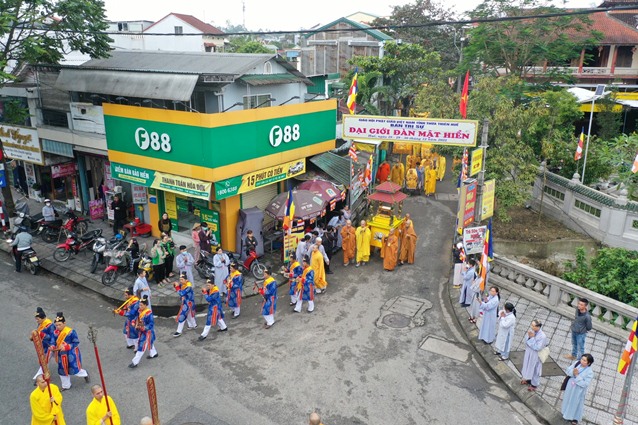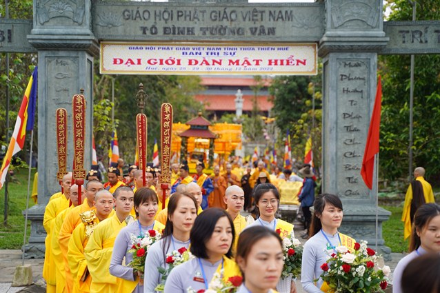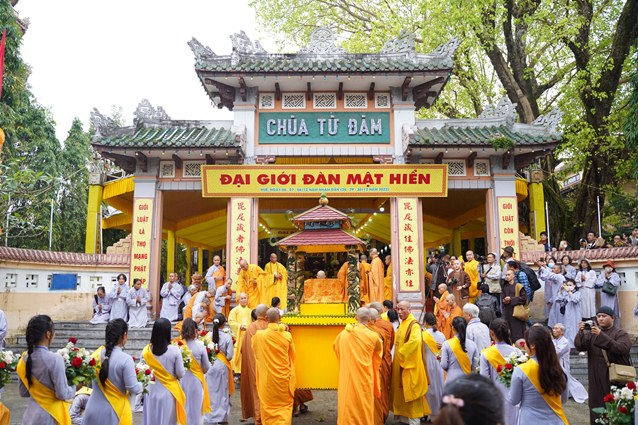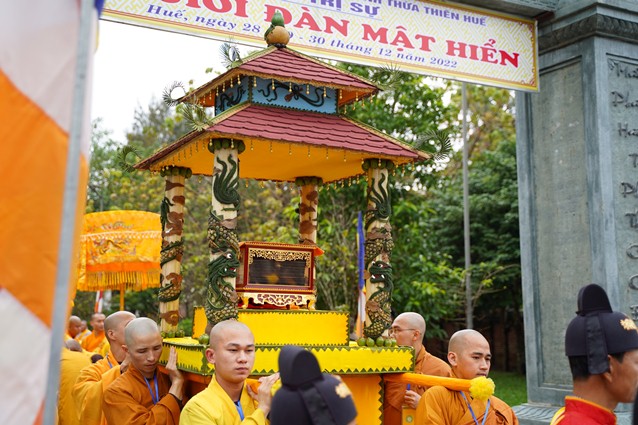 Chiều 28/12/2022; chư Tôn đức Ban Nghi lễ đã thành tâm cung thỉnh chư Tôn đức Giới sư, chư Tôn đức Ban Kiến đàn từ Tổ đình Tường Vân về Tổ đình Từ Đàm để cử hành lễ khai mạc Đại giới đàn Mật Hiển.