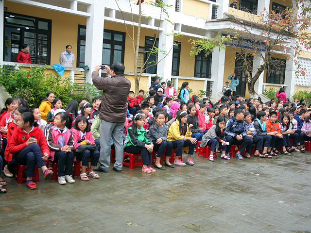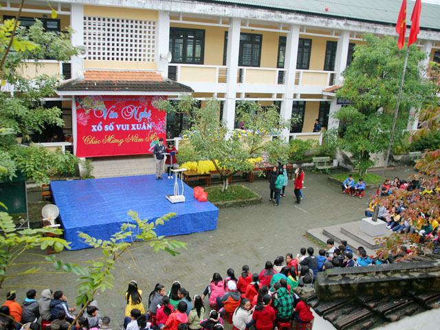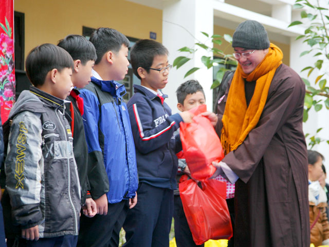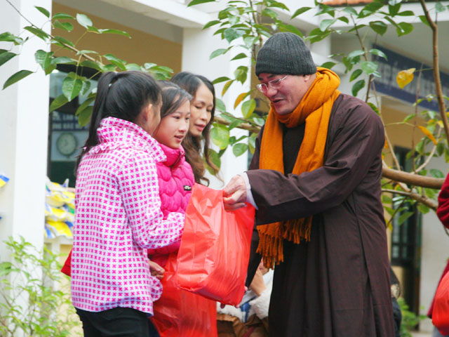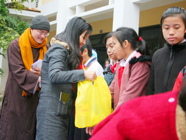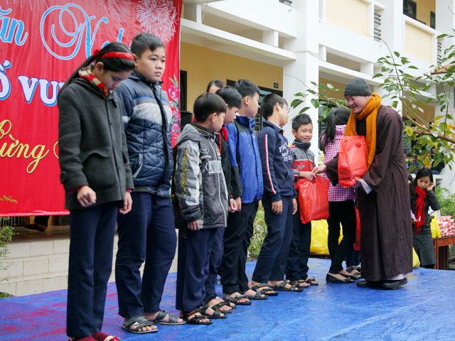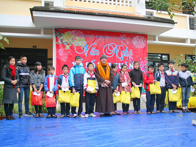 Sáng nay, ngày 04.02.2016, Đại đức Thích Tâm Phương, Trưởng Ban Trị sự GHPGVN huyện A Lưới và Bà Nguyễn Thị Huệ, Giám đốc Nhà hàng chay Thiền Tâm Huế đã về tặng quà cho các em học sinh tại trường THCS Phan Sào Nam, số 146, đường Trần Quốc Toản, phường Tây Lộc, thành Phố Huế.