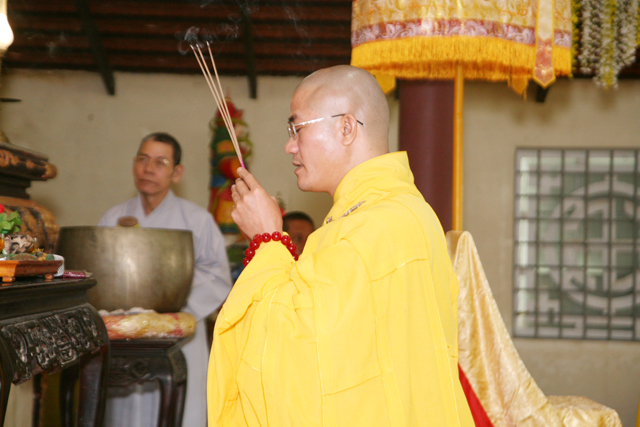 Đại đức Thích Tâm Phương niêm hương bạch Phật