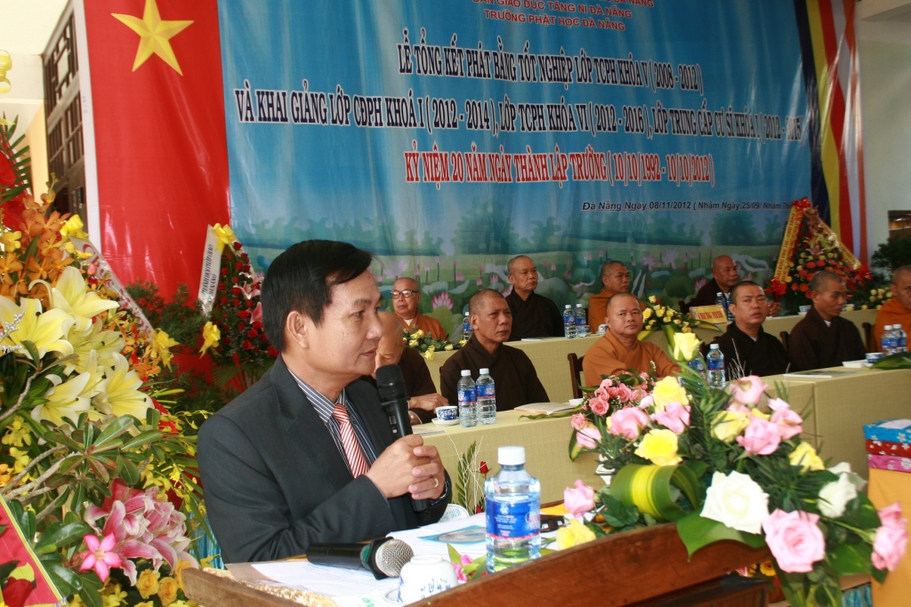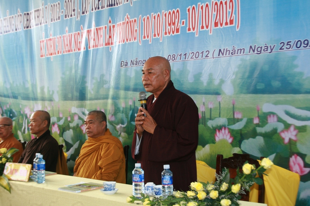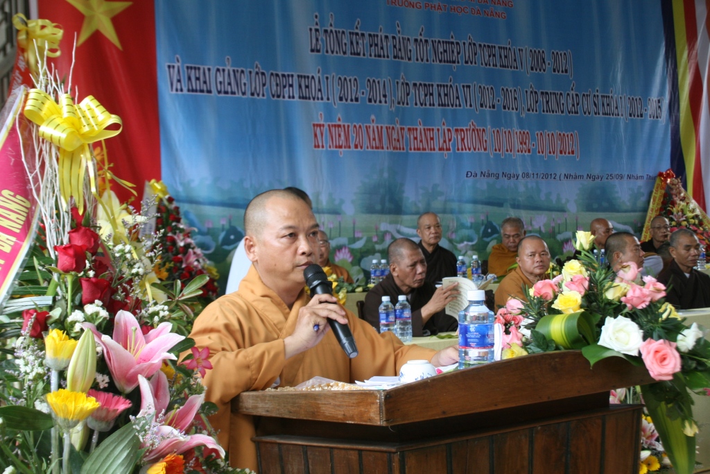 Sau phần Niệm Phật cầu gia bị là diễn văn chào mừng của Thượng Tọa Thích Thiện Toàn – Hiệu trưởng trường TCPH TPĐN đã nói nhờ sự quan tâm của Giáo Hội về việc giáo dục đào tạo Tăng tài cùng những cố gắng nổ lực của Chư Tôn đức trong Ban Giám hiệu mới có kết quả thành tựu trong 20 năm qua của Trường TCPH ĐN.