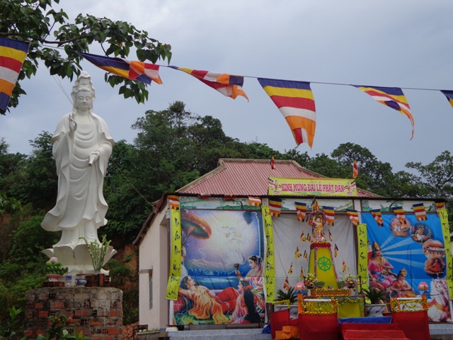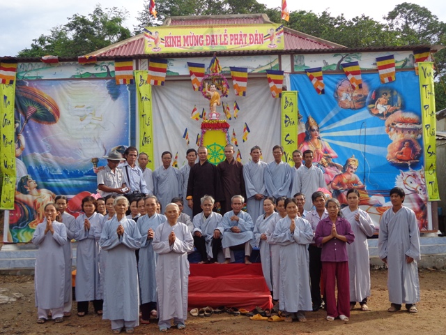 Trước mắt chúng tôi cảnh quan một ngôi chùa thô sơ vừa mới thành lập, băng rôn cờ xí, lễ đài được thiết trí rực rỡ đón mừng Đức Phật ra đời, tuy không lộng lẫy hoành tráng như những ngôi chùa phố thị đủ mọi điều kiện, nhưng tất cả những tấm lòng thành kính của bà con Phật tử nơi đây đã làm nên một mùa Phật đản trang nghiêm và trọng thể.