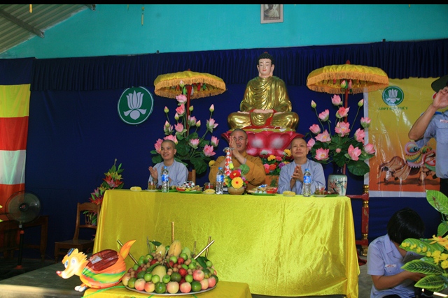 Tham dự buổi lễ có sự hiện diện của chư Tôn đức Tăng, Ni, quý Đạo hữu cư sĩ Ban Trị sự GHPGVN huyện A Lưới, các vị phụ huynh và các em Đoàn sinh.
