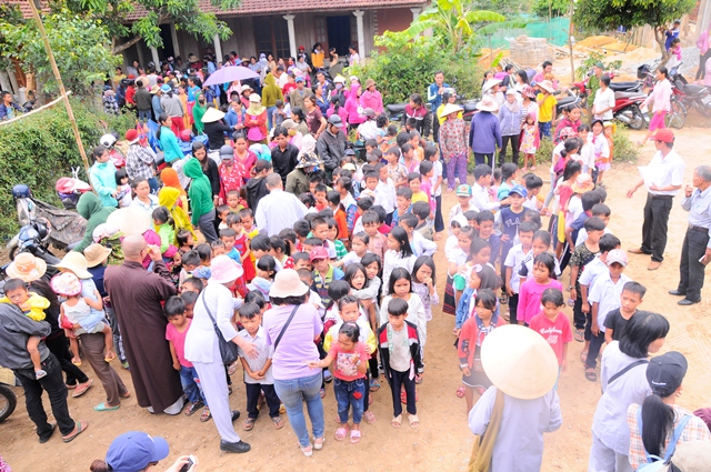 Vượt chặng đường hơn 200 km, đoàn từ thiện Nhân Tâm (Tp. Đà Nẵng) đã mang nhiều tặng phẩm về trao tặng cho các gia đình có hoàn cảnh khó khăn tại nhà sinh hoạt cộng đồng thôn A Tia 2, xã Hồng Kim.