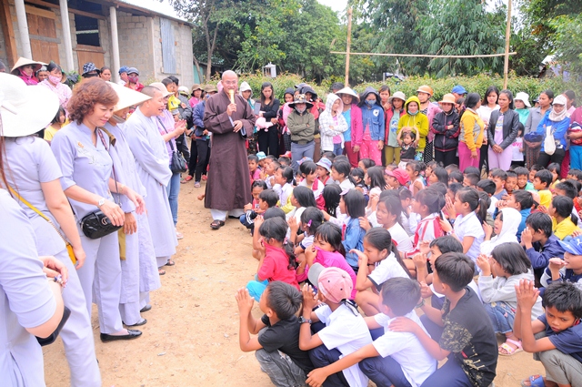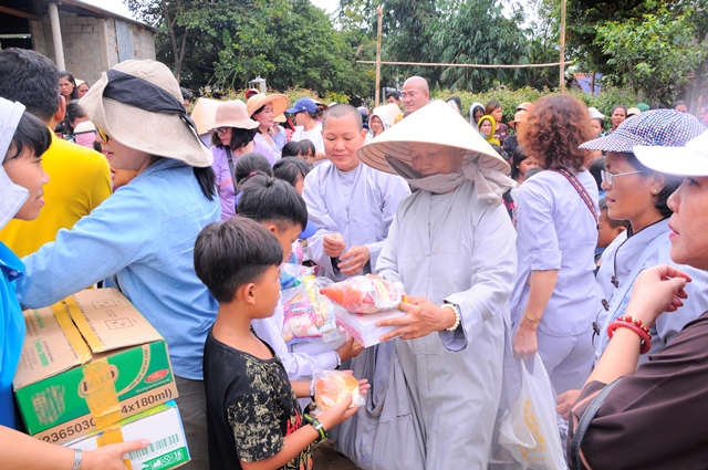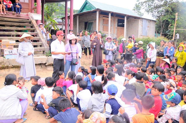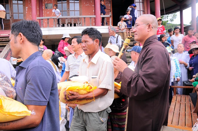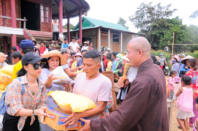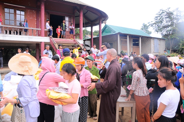Thay mặt bà con đến nhận quà, Đại đức Thích Tâm Phương, Trưởng Ban Trị sự GHPGVN huyện A Lưới đã có lời cảm ơn sâu sắc đến phái đoàn từ thiện Nhân Tâm (Tp. Đà Nẵng), các nhà hảo tâm, các mạnh thường quân đã thể hiện đạo tâm đạo tình, không quản ngại đường xá để cùng với quý Tôn đức chung lo Phật sự tại huyện vùng cao A Lưới, nơi còn gặp nhiều khó khăn vất vả của tỉnh Thừa Thiên Huế nói chung và của cả nước nói riêng.