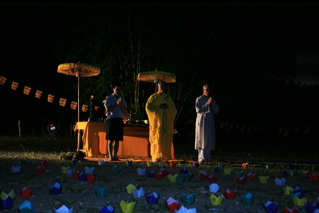 Ngọn đèn, biểu tượng của ánh sáng trí huệ và tinh thần từ bi theo giáo lý nhà Phật đã tuần tự được Đại đức Thích Tâm Phương, Trưởng Ban Trị sự GHPGVN huyện A Lưới; Đạo hữu Phan Ngôn, Phó Trưởng Ban Hộ tự Niệm Phật đường Sơn Nguyên; Huynh trưởng Hoàng Hữu Ngạn, Gia trưởng GĐPT Sơn Nguyên thắp lên trong không khí trang nghiêm và thành kính dâng lên Đức Phật, dâng lên đất trời với mong muốn cầu cho các bậc cha mẹ luôn được sống lâu, an vui và trường thọ trong ánh sáng từ bi của mười phương chư Phật.