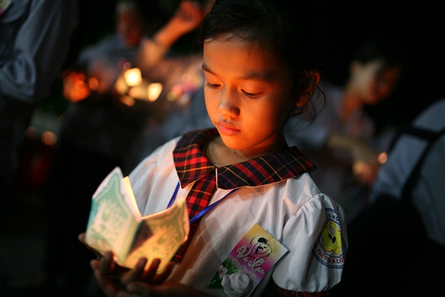 Và cũng trong đêm đó, Ngọn đèn, biểu tượng của ánh sáng trí huệ và tinh thần từ bi theo giáo lý nhà Phật đã tuần tự được Bác Quảng Thọ - Lê Khôi, trưởng Ban hộ tự Niệm Phật đường Sơn Nguyên thắp lên trong không khí trang nghiêm và thành kính dâng lên Đức Phật, dâng lên đất trời với mong muốn cầu cho các bậc cha mẹ luôn được sống lâu, an vui và trường thọ trong ánh sáng từ bi của mười phương chư Phật.