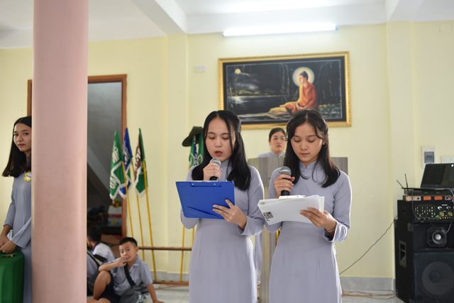 Huynh trưởng Quảng Thành - Trần Thị Bảo Tâm điều hành chương trình