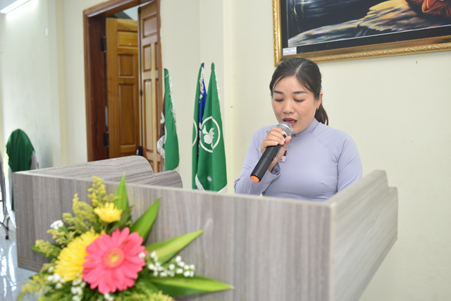 Huynh trưởng Quảng Ánh - Hồ Thị Ngọc Lanh đọc báo cáo