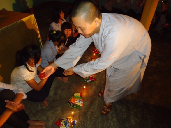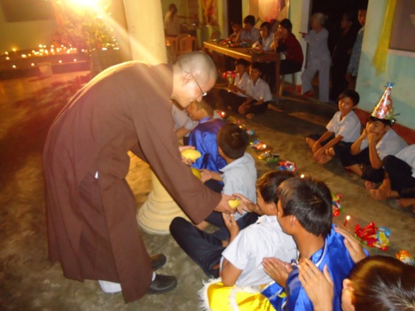 Hơn 100 phần quà Trung thu của thầy Trưởng ban được phát hết cho các em đoàn sinh trong GĐPT, Ban tổ chức còn gửi tặng quà cho các em thiếu nhi bên ngoài đến xem cùng chia vui trong đêm hội.
