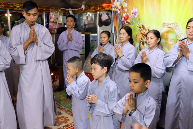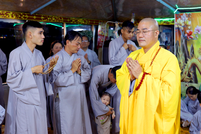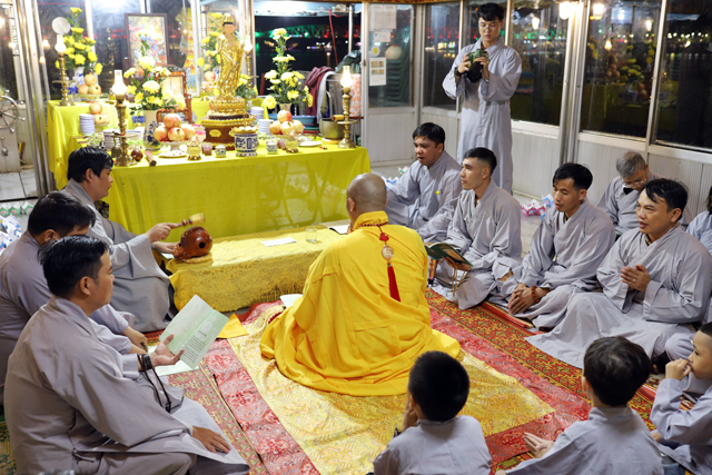 Đại đức Thích Tâm Phương hướng dẫn đại chúng trì tụng kinh Phổ Môn