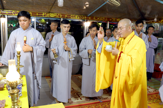 Vào lúc 18h30 ngày 20/10 tại Bến thuyền Tòa Khâm, số 49 đường Lê Lợi, thành phố Huế, Đại đức Thích Tâm Phương, Ủy viên BTS GHPGVN tỉnh TT. Huế, Trưởng Ban Trị sự GHPGVN huyện A Lưới đã hướng dẫn quý Phật tử trong Gia đình Hương Sen thực hiện nghi lễ Phóng sanh và thả hoa đăng trên dòng Hương Giang thơ mộng hướng đến ngày Vía Đức Bồ tát Quán Thế Âm 19.09 Âm lịch.