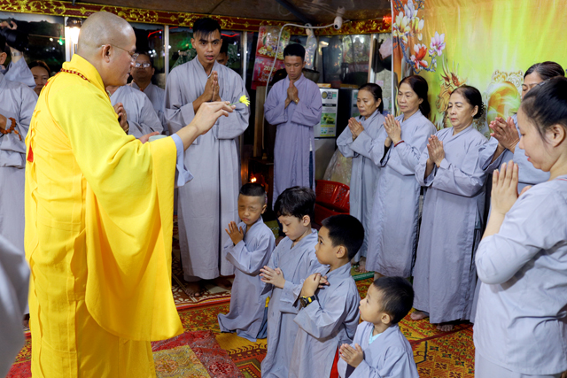 Đại đức chứng minh niêm hương bạch Phật và hướng dẫn đạo tràng đã trì tụng kinh Phổ Môn, qua bản Kinh cho ta thấy Bồ tát Quán Thế Âm là hình tượng nổi bật nhất của Đại Từ bi; những hóa thân của ngài gồm 33 hay 35 hình tướng để có thể thuận tiện cứu khổ cho chúng sanh.