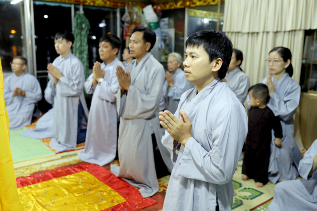 Sau phần niêm hương bạch Phật, Đại đức Thích Tâm Phương đã hướng dẫn quý Phật tử trì tụng kinh Phổ môn. Phóng sinh là việc làm thể hiện lòng từ bi mong muốn đem an lạc hạnh phúc đến cho tất cả chúng sinh. Việc làm này lần đầu tiên được biết đến qua lịch sử của đức Bổn sư Thích Ca Mâu Ni Phật khi Ngài còn là một vị thái tử Tất Đạt Đa.