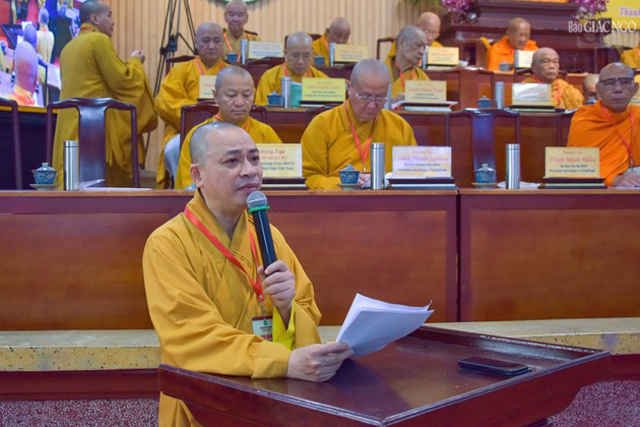 Nhiều đại biểu tham dự hội nghị đã đặt các câu hỏi đến chủ tọa hội nghị, trong đó chủ yếu xoay quanh 2 vấn đề lớn như: về đại biểu tham dự Vesak Liên Hiệp Quốc 2025 đối với đại biểu các đạo tràng Phật tử trong nước và vấn đề tinh gọn hệ thống Giáo hội trên tinh thần tinh gọn bộ máy tổ chức theo hướng tinh - gọn - mạnh, hiệu năng - hiệu lực - hiệu quả mà Nhà nước đang tiến hành.