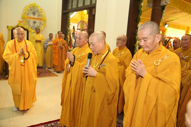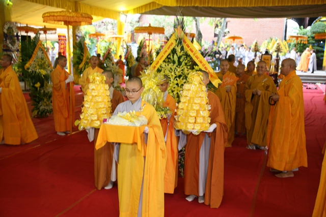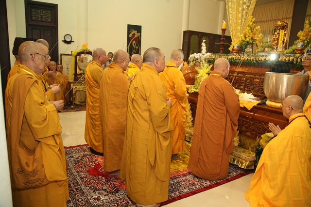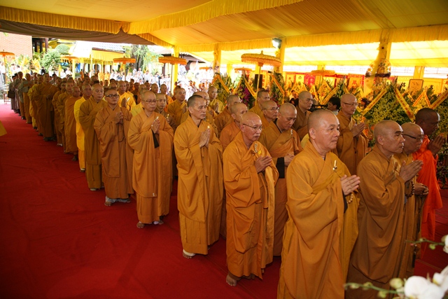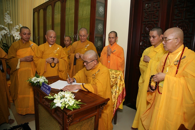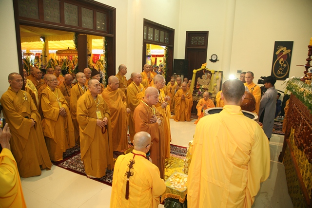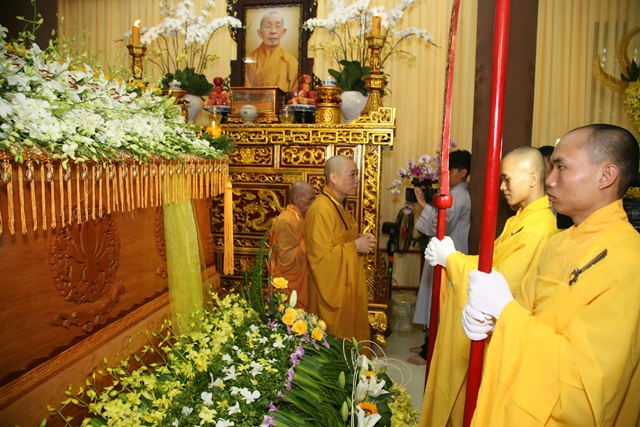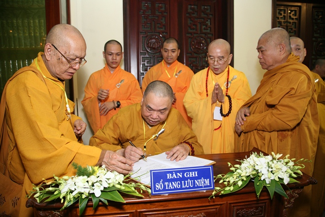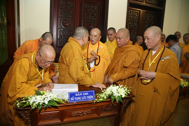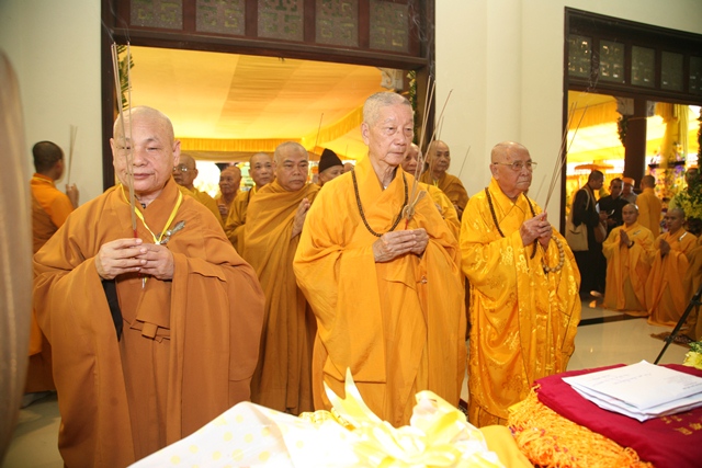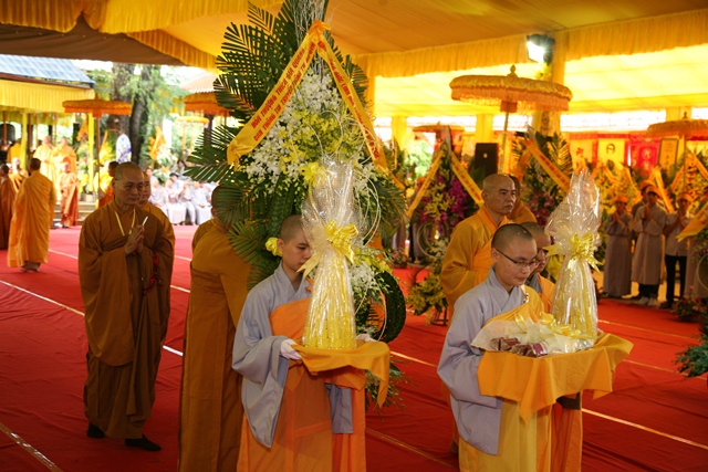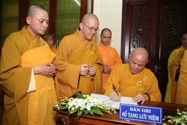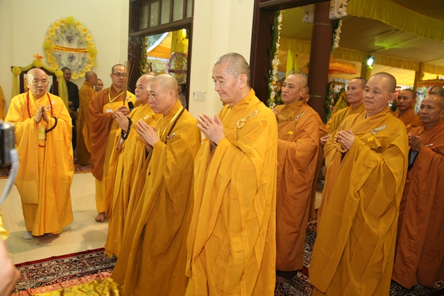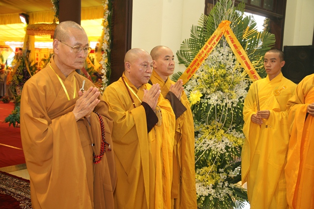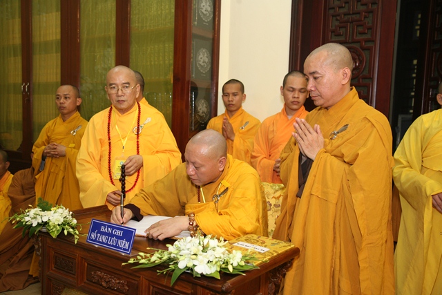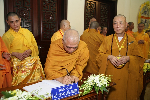 Tháp tùng có chư Tôn giáo phẩm Thành viên HĐCM, chư tôn Hòa thượng Phó Chủ tịch HĐTS, chư Tôn đức lãnh đạo các ban, viện Trung ương. Chư Tôn đức các Ban Trị sự các tỉnh thành trong cả nước, chư Tôn giáo phẩm đã niêm hương trước Giác linh đài, nhiễu kim quan và ghi vào sổ tang những dòng tưởng niệm về Trưởng lão Hoà thượng tân viên tịch.
