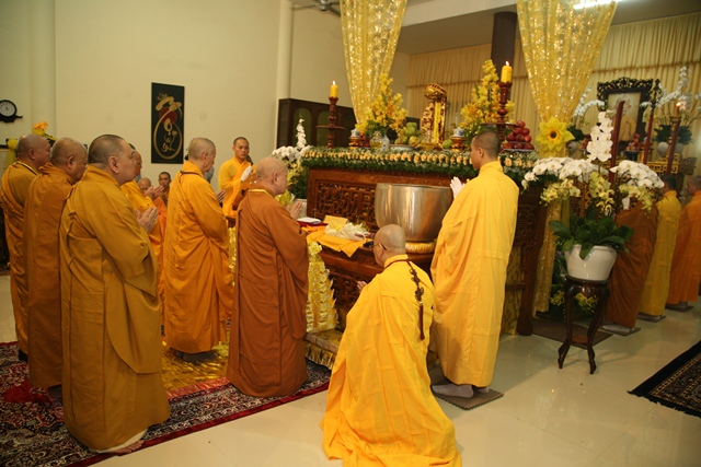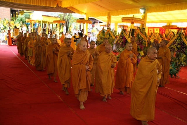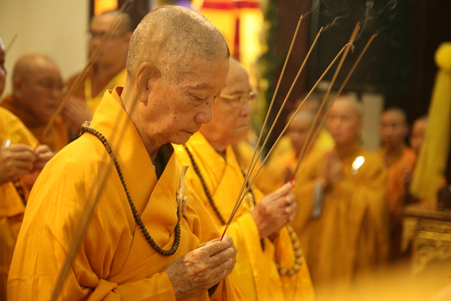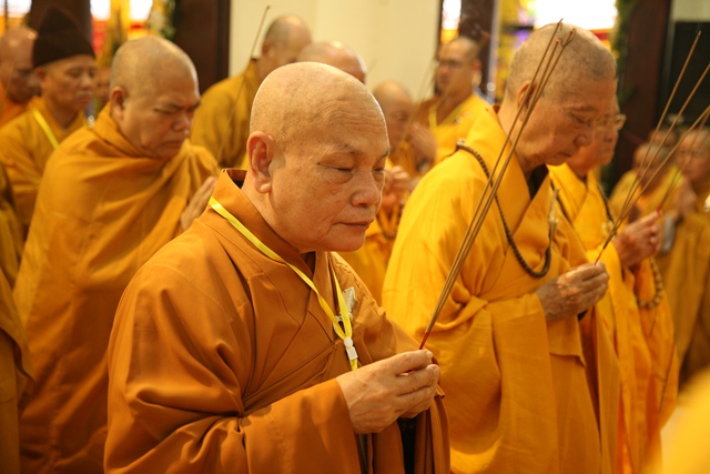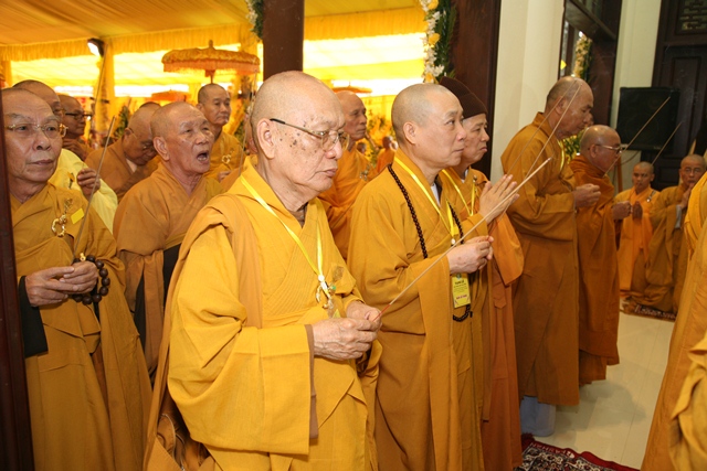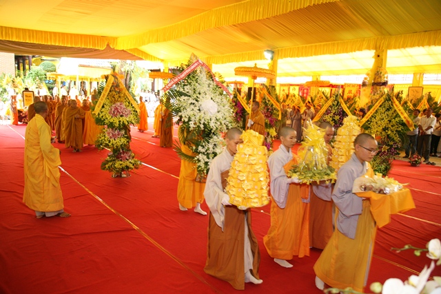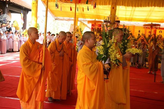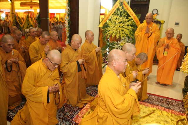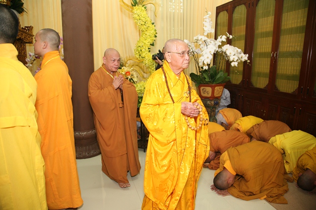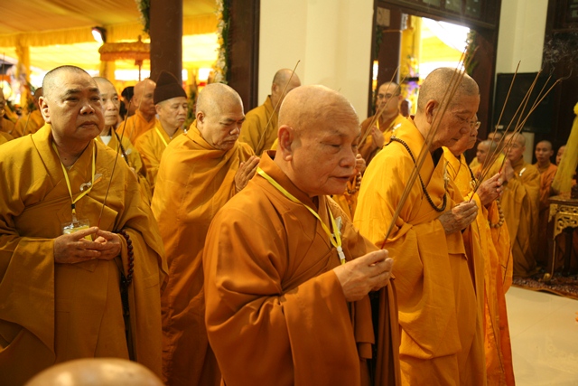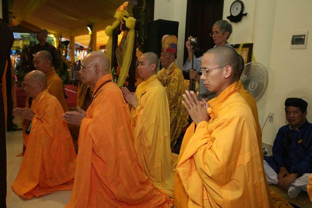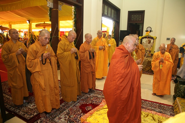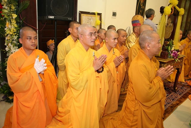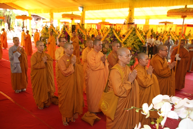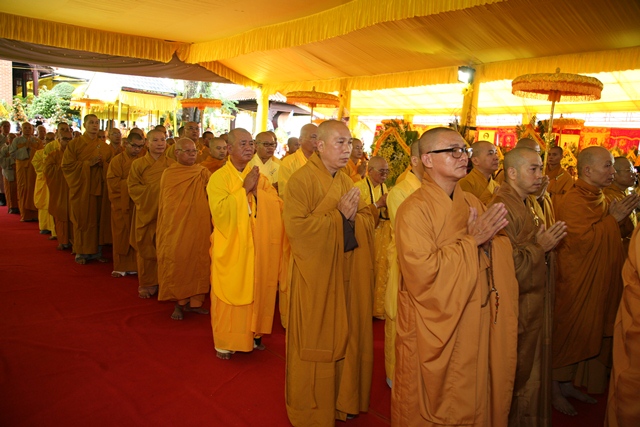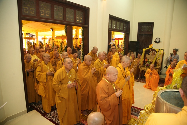 Tháp tùng có chư Tôn giáo phẩm Thành viên HĐCM, chư tôn Hòa thượng Phó Chủ tịch HĐTS, chư Tôn đức lãnh đạo các ban, viện Trung ương. Chư Tôn đức các Ban Trị sự các tỉnh thành trong cả nước, chư Tôn giáo phẩm đã niêm hương trước Giác linh đài, nhiễu kim quan và ghi vào sổ tang những dòng tưởng niệm về Trưởng lão Hoà thượng tân viên tịch.