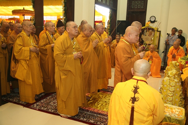 Đoàn do Trưởng lão HT.Thích Trí Quảng, Phó Pháp chủ HĐCM; HT.Thích Thiện Duyên, Thành viên HĐCM; HT. Thích Thiện Nhơn, Chủ tịch HĐTS dẫn đầu.