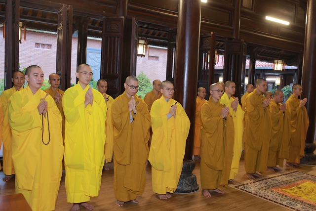 Trước đó, TT.TS Thích Nguyên Thành - UV HĐTS GHPGVN, Phó Trưởng Ban Giáo dục Phật giáo TƯ, Phó Viện trưởng kiêm trưởng phòng Đào tạo Học viện PGVN tại Huế cùng Tăng Ni sinh các khóa đã vân tập tại Chánh điện trì tụng kinh Phạm Võng nhân ngày Huý nhật cố Trưởng lão Hoà thượng Thích Chơn Thiện.