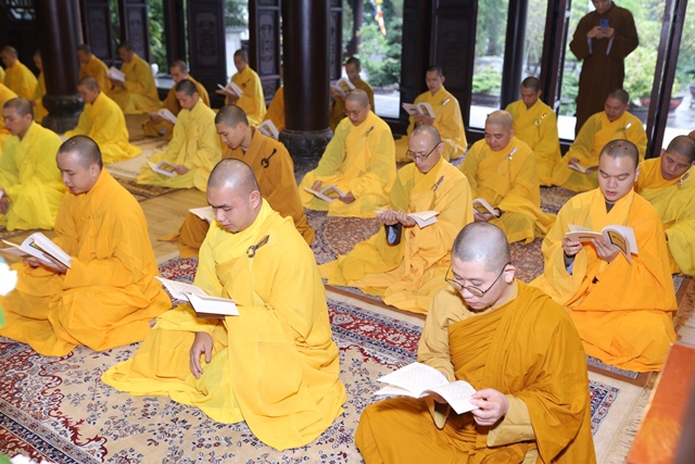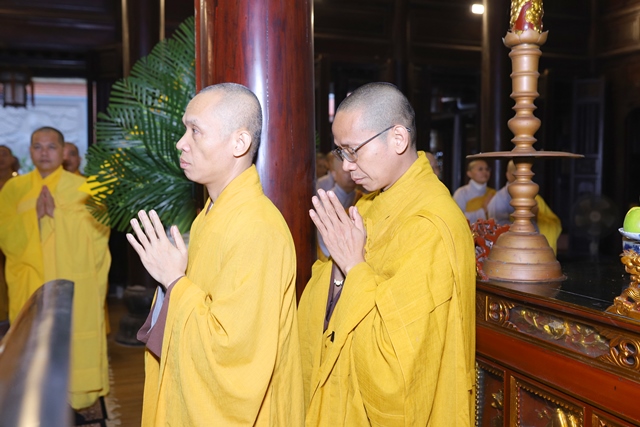 Trước đó, TT.TS Thích Nguyên Thành - UV HĐTS GHPGVN, Phó Trưởng Ban Giáo dục Phật giáo TƯ, Phó Viện trưởng kiêm trưởng phòng Đào tạo Học viện PGVN tại Huế cùng Tăng Ni sinh các khóa đã vân tập tại Chánh điện trì tụng kinh Di Giáo nhân ngày Huý nhật cố Trưởng lão Hoà thượng Thích Chơn Thiện.