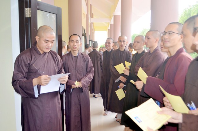 Tăng Ni thí sinh làm thủ tục và thực hiện bài thi