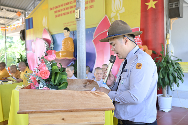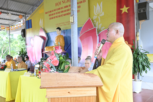 Đại đức Thích Thiền Huy báo cáo Tổng kết công tác Phật sự năm 2023