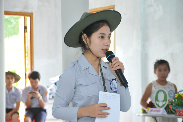 Huynh trưởng Quảng Ánh - Hồ Thị Ngọc Lanh, Liên Đoàn phó GĐPT Sơn Nguyên báo cáo tổng kết hoạt động ngành nữ