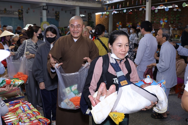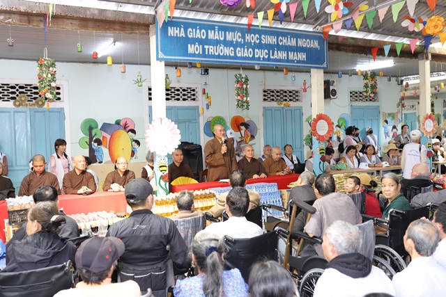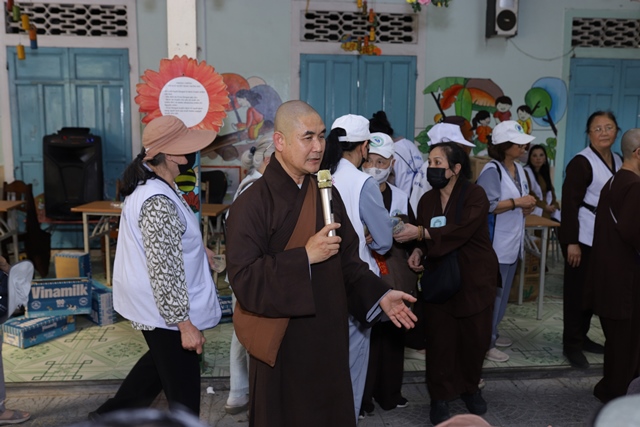 Tại buổi lễ Đại đức Thích Tâm Phương đã chia sẻ pháp thoại cùng bà con có hoàn cảnh khó khăn. Đại đức nhấn mạnh đến quý bà con khuyết tật. Nói đến đạo Phật là nói đến tinh thần nhân quả, nói đến sự giác ngộ của một con người. Con người sinh ra đủ phước báo hay bất hạnh là do tích lũy nghiệp từ nhiều đời mà hiện tại cho ra kết quả khác nhau. Mọi việc đều có thể thay đổi và cải thiện tốt hơn nếu chúng ta có ý chí và quyết tâm cao độ. Tất cả mọi hiện tượng, sự vật trên thế gian này là một dòng chuyển biến liên tục từng phút giây, không có gì là cố định cả. Quý vị hãy nhất tâm niệm Phật, lấy câu Phật hiệu nằm lòng thì sẽ gặp được nhiều an lạc trong cuộc sống.