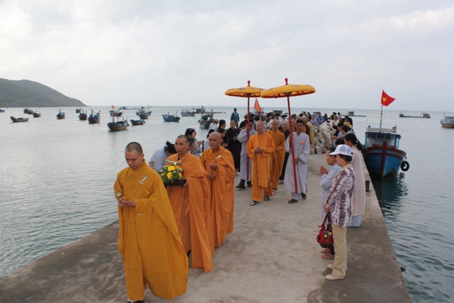 Về phía chính quyền có ông Hồ Văn Điều, Chủ tịch UB MTTQVN thôn Ninh Đảo. Ông Trần Minh Trường, Thôn trưởng Thôn Ninh Đảo. Ông Võ Thịnh Hào, thôn phó thôn Ninh Đảo; Ông Lê Lý, Bí thư chi bộ thôn Ninh Đảo; Ông Trần Kim Tú, công an viên thôn Ninh Đảo và hơn 500 Phật tử từ đất liền về tham dự.