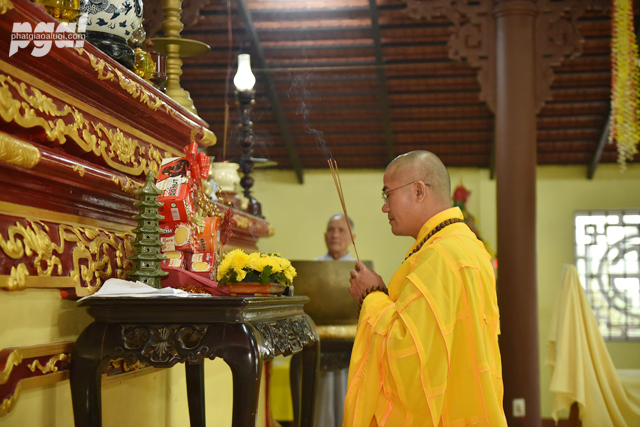 Đại đức Thích Tâm Phương niêm hương bạch Phật