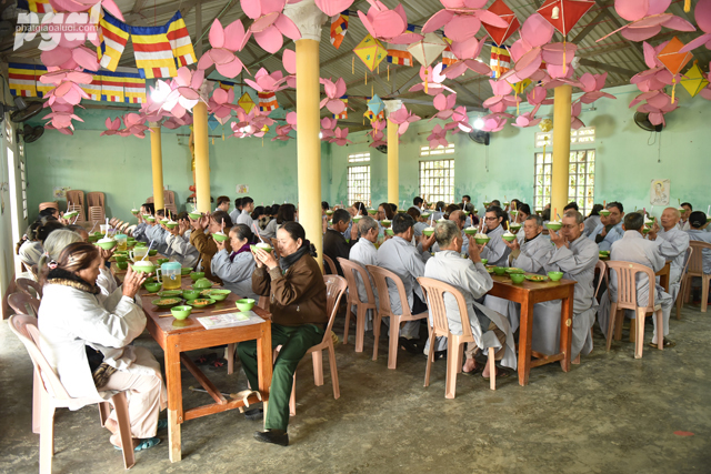 Đúng 11 giờ 00 chư Tôn đức hướng dẫn quý Đạo hữu cử hành thời khoá Quá đường trong sự trang nghiêm chánh niệm. Khóa tu đã khép lại trong niềm hoan hỷ của toàn thể đại chúng.