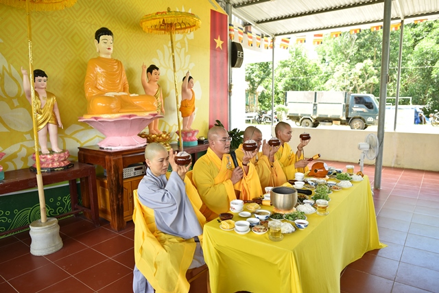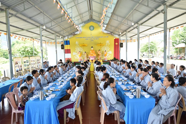 Đúng 11 giờ 00 chư Tôn đức hướng dẫn quý Đạo hữu cử hành thời khoá Quá đường trong sự trang nghiêm chánh niệm. Khóa tu đã khép lại trong niềm hoan hỷ của toàn thể đại chúng.