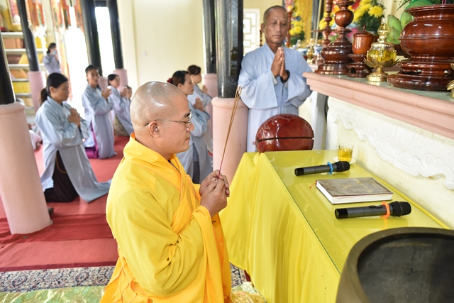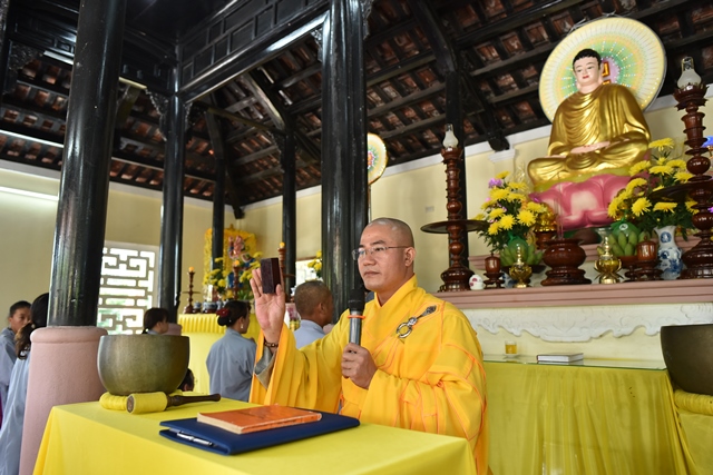 Đại đức Trưởng Ban Trị sự đã truyền giới pháp Bát Quan trai, đồng thời chia sẻ pháp thoại đến quý Đạo hữu Phật tử với đề tài “Kinh Phước Đức trong đời sống những người con Phật ”.