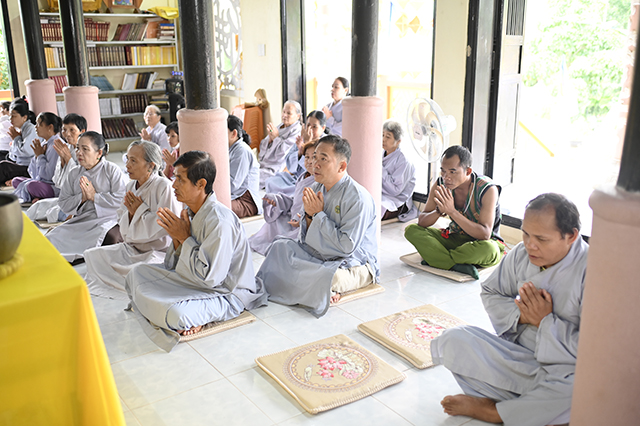 Sau phần chia sẻ pháp thoại, chư Tôn đức đã hướng dẫn quý Phật tử dùng cơm trong chánh niệm. Qua khóa tu mỗi vị hành giả sẽ học được nhiều điều bổ ích cũng như cách sống làm sao tìm thấy an lạc tự thân từ đó chia sẽ niềm an lạc đến tất cả mọi người.